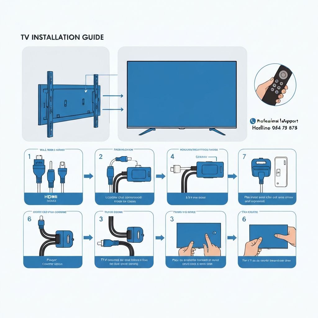 Professional guidance for physical TV setup, mounting, and connectivity.